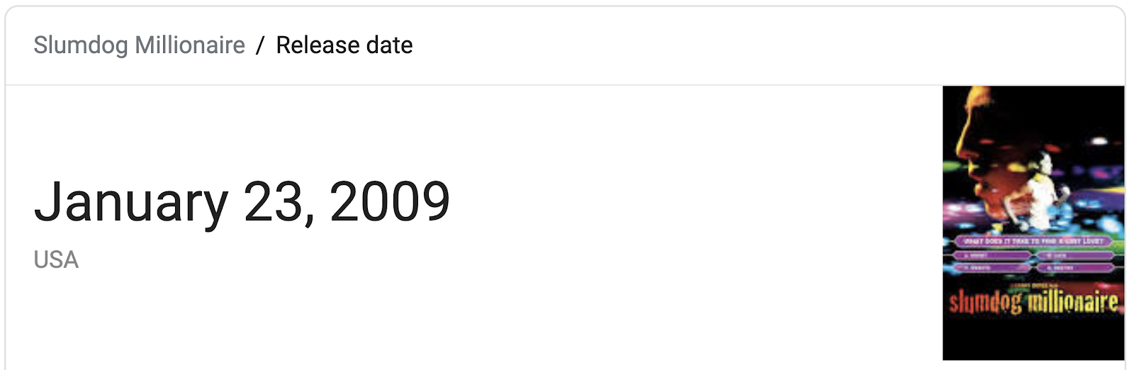 The film Slumdog Millionaire, the biggest film to come out of Bollywood in terms of U.S. recognition, released on a date with 53 numerology, January 23, 2009, in India.