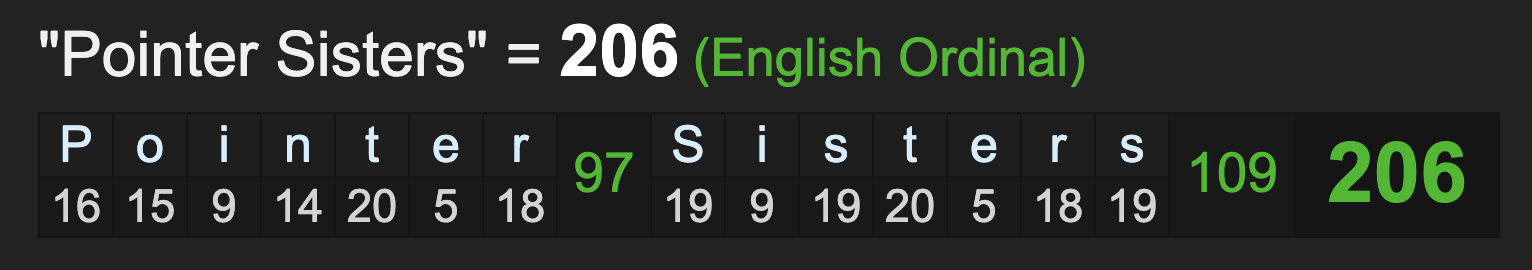 Notice the group name sums to 206, connecting to ‘sacrifice’.