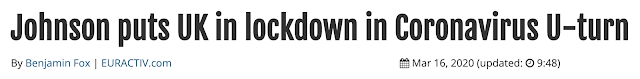 The U.K joins the list of nations to go into lockdown mode, following the script of the contrived coronavirus pandemic.
