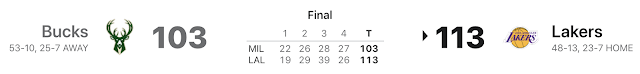 Bucks lose to Lakers, 103-113, March 6, 2020 +LeBron James Day