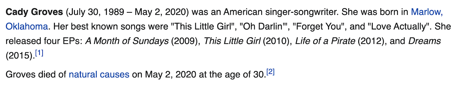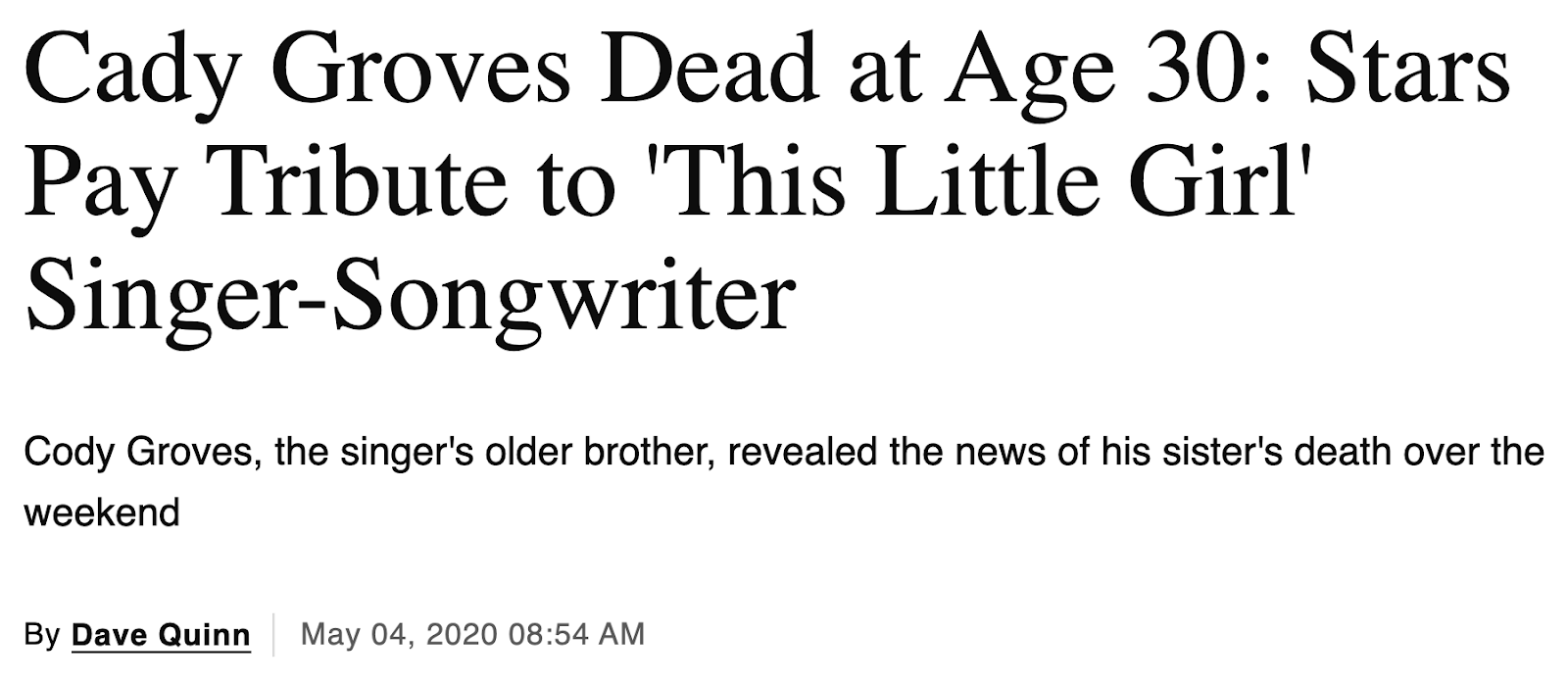 Cady Groves, 30-year-old country singer, dead for unknown reasons, May 2, 2020 | What is 47?