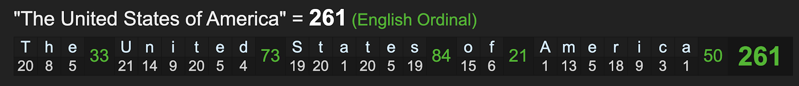 *America = 32; 7/4/1776 = 7+4+1+7+7+6 = 32