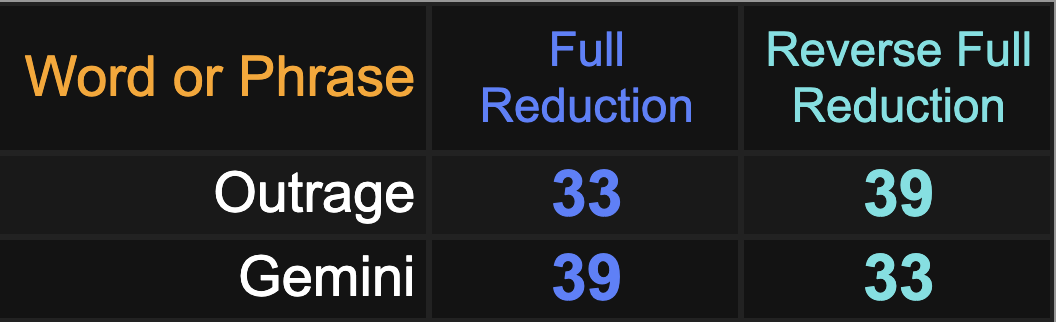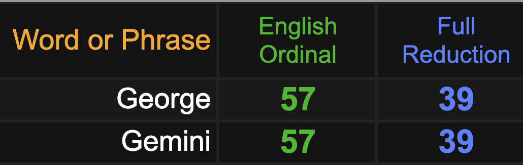 Gematria reveals what one of the key elements of the ritual is: Gemini which synchs with the main subject’s name.
