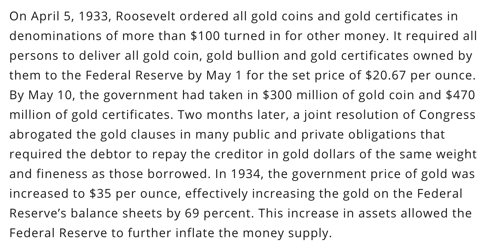 Notice the gold standard had been in place since 1979, 54-years prior to 1933.