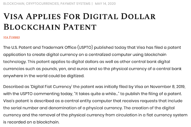 Visa applies for digital dollar blockchain patent, May 14, 2020, Israel’s 72nd birthday