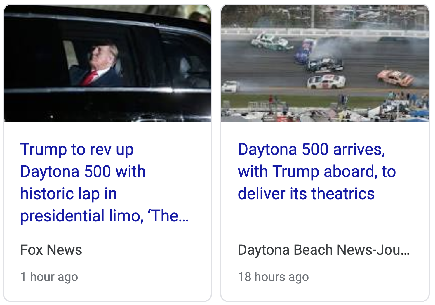 On this same day, the 62nd Daytona 500 is taking place, and Trump is the Grand Marshal of the race. See the prior post on it, because the car that was supposed to be in the race with the Trump-Pence 2020 artwork, crashed in Tennessee, or as the media put it, “somewhere in Tennessee”, meaning the story is bullshit, and part of an ongoing contrived narrative, by the numbers.