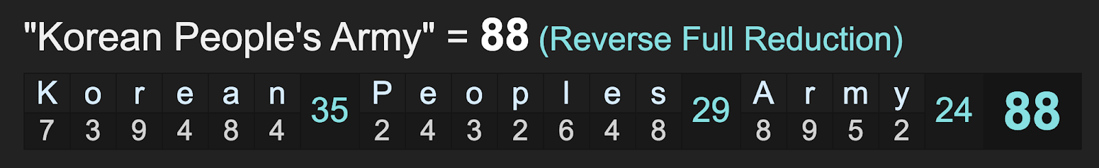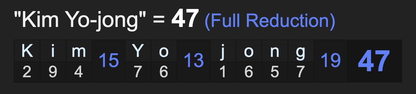 Notice the name Kim Jong Un sums to 114.