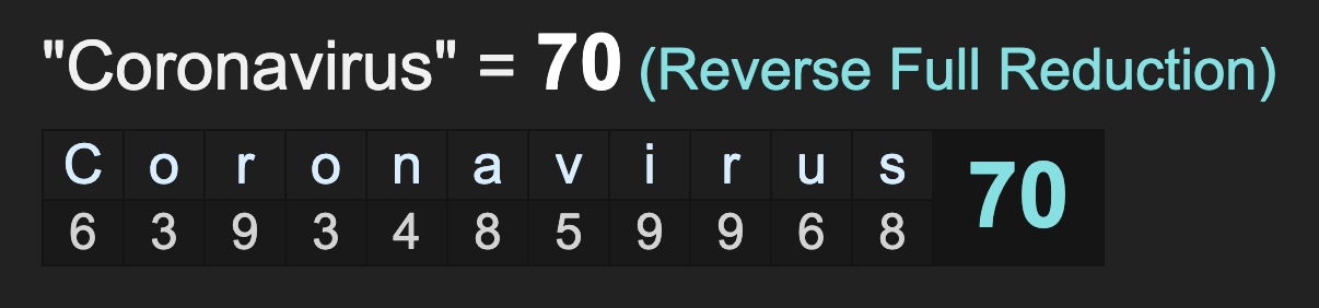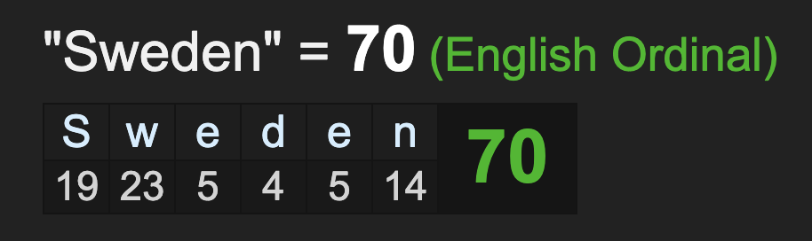 Sweden, happens to sum to 70, like ‘coronavirus’.