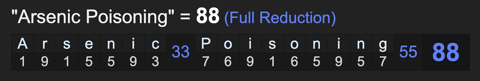 The number 88 is connected to many suspicious deaths, and reminds that poison, especially arsenic poisoning, is connected to ritual killing all throughout history.