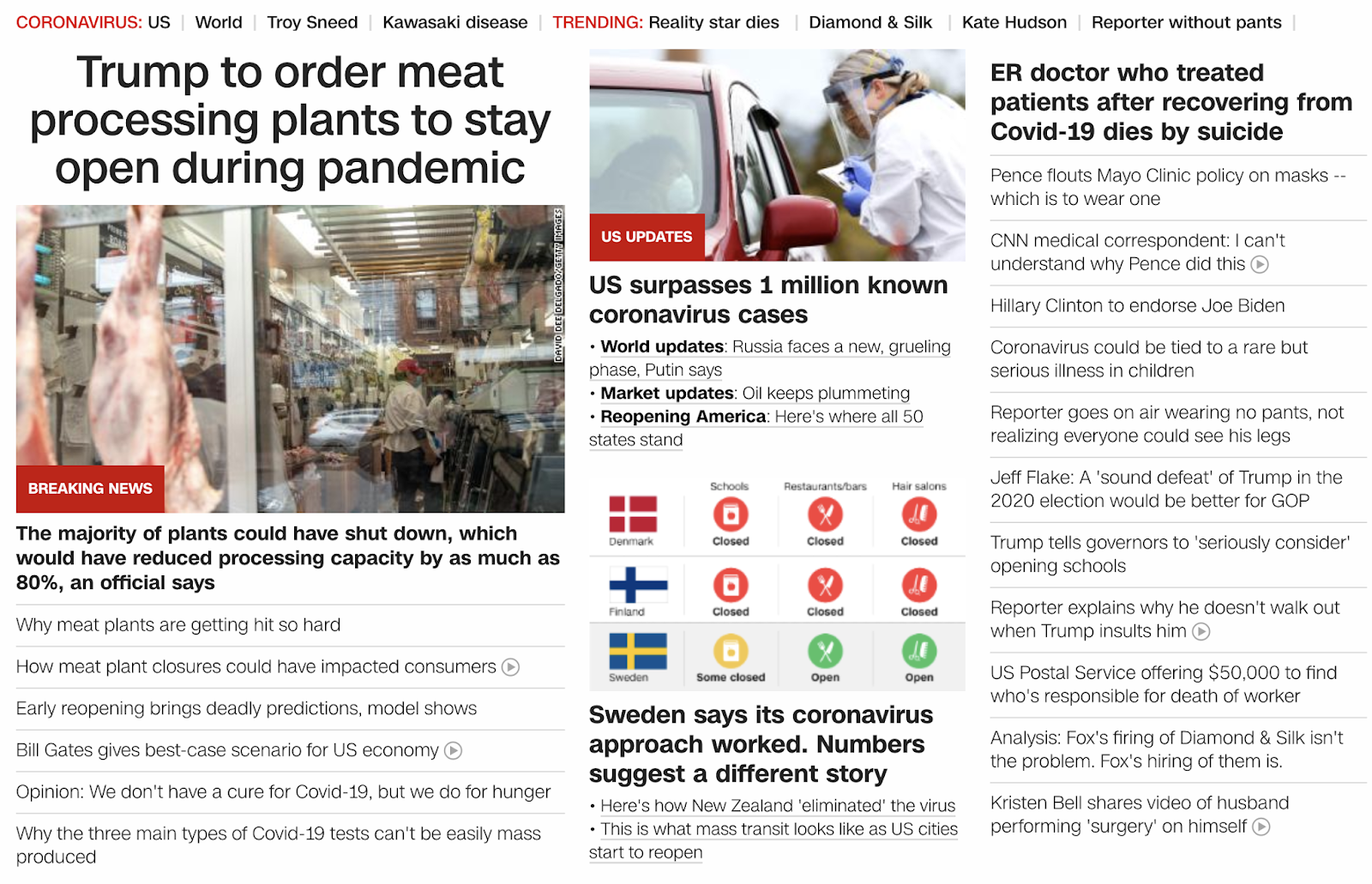 CNN focuses on coronavirus numbers in Nordic countries, especially Sweden, April 28, 2020