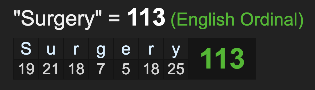 Notice how ‘heart surgery’ sums to 69 as well.