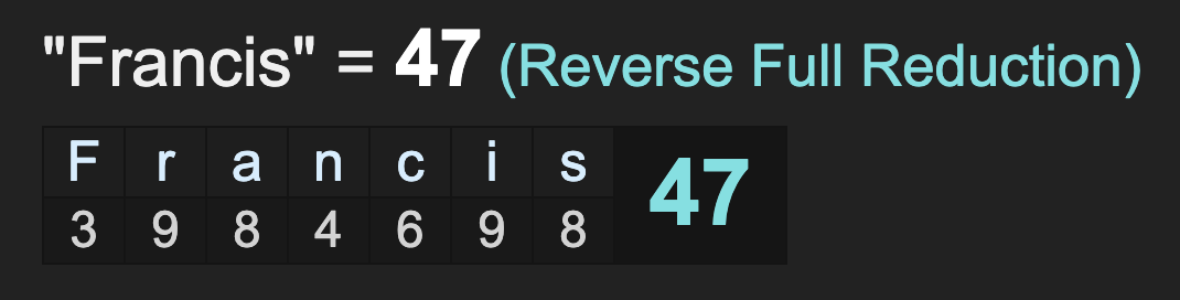 4/23/20 = 4+23+20 = 47