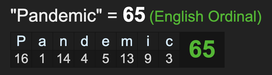 Remember, Event 201, which simulated a “coronavirus outbreak”, October 18, 2019, predicated 65 million people would die. And again, that event came 56-days before patient zero, December 12, 2019. Of course, ‘coronavirus’ sums to 56 in the most pure cipher.