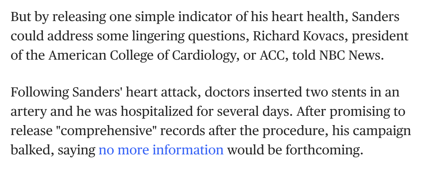 Bernie Sanders is holding back information about the health of his heart, February 24 news +October 1, 2019 heart attack reminder