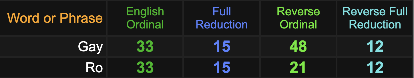 And last, notice how ‘Ro’ and ‘gay’ go together.
