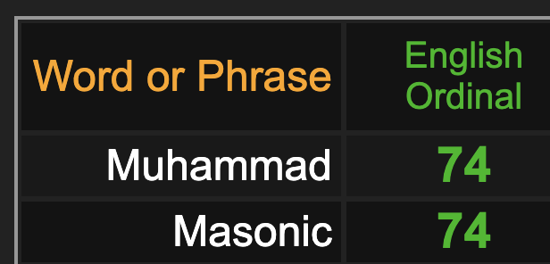 *Masonic = 74 *Occult = 74