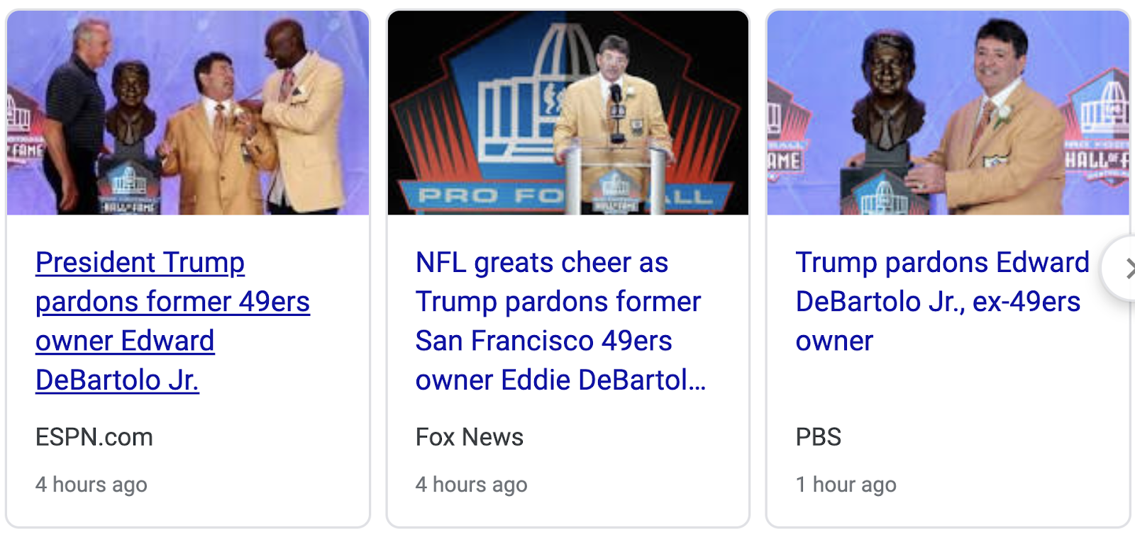 On February 18, the 49th day of the year, Donald Trump pardons Edward “Eddie” DeBartolo Jr., the man who made the 49ers the dominant team they once were. What a numerical mockery.