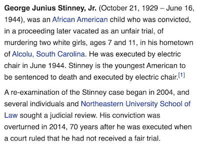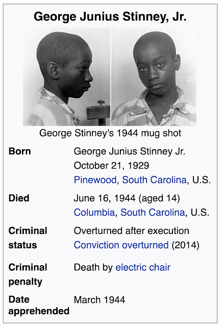 George Junius Stinney Jr., the youngest person ever put to death by the state, June 16, 1944, at age 14