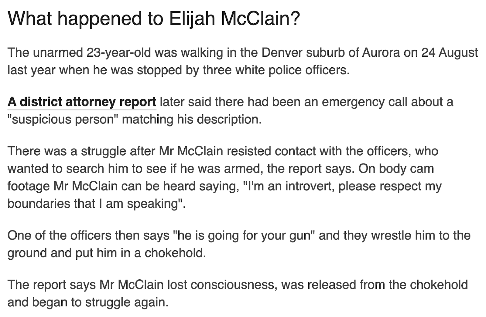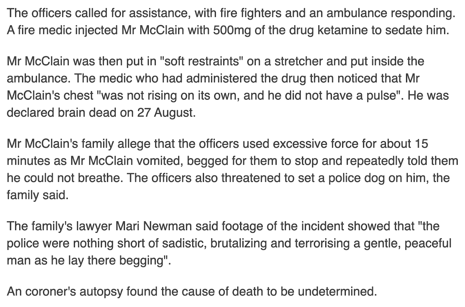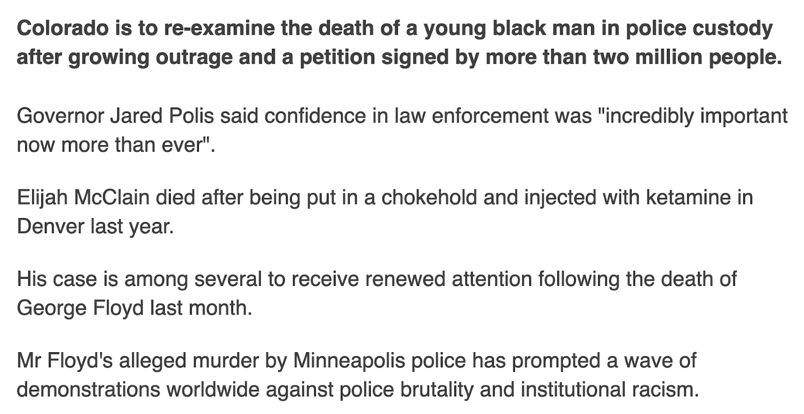 The August 24, 2019 chokehold of Elijah McClain in Denver, Colorado, in light of George Floyd