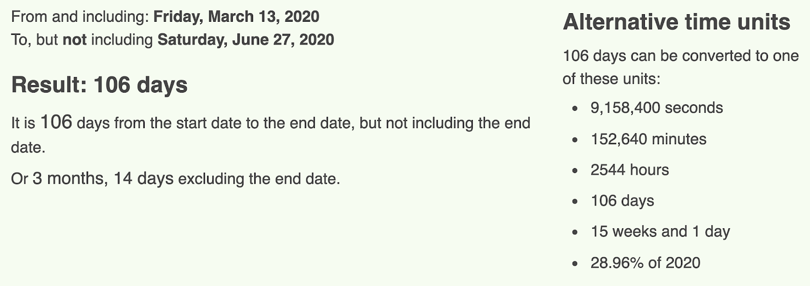 From Breonna Taylor’s killing on March 13, 2020, to this latest incident, June 27, was 106 days later, or a span of 107 days.