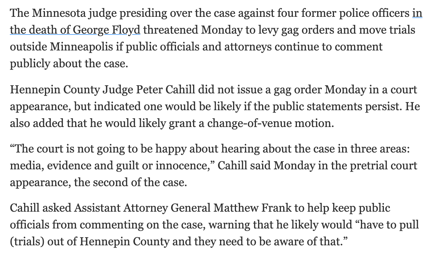 Judge sets key George Floyd murder trial dates for September 11 and March 8, 2021