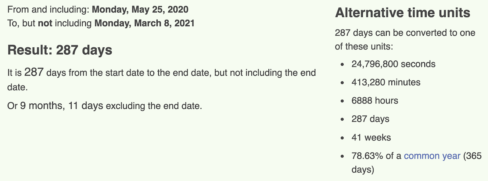 As for March 8, 2021, it is 9 months and 11 days after May 25, 2020.