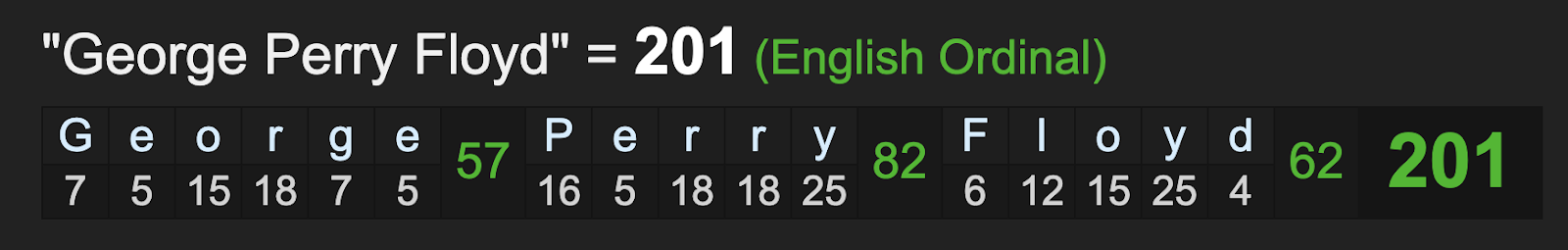 Read more about George Floyd and 201 here: https://gematriaeffect.news/?s=george+floyd+201