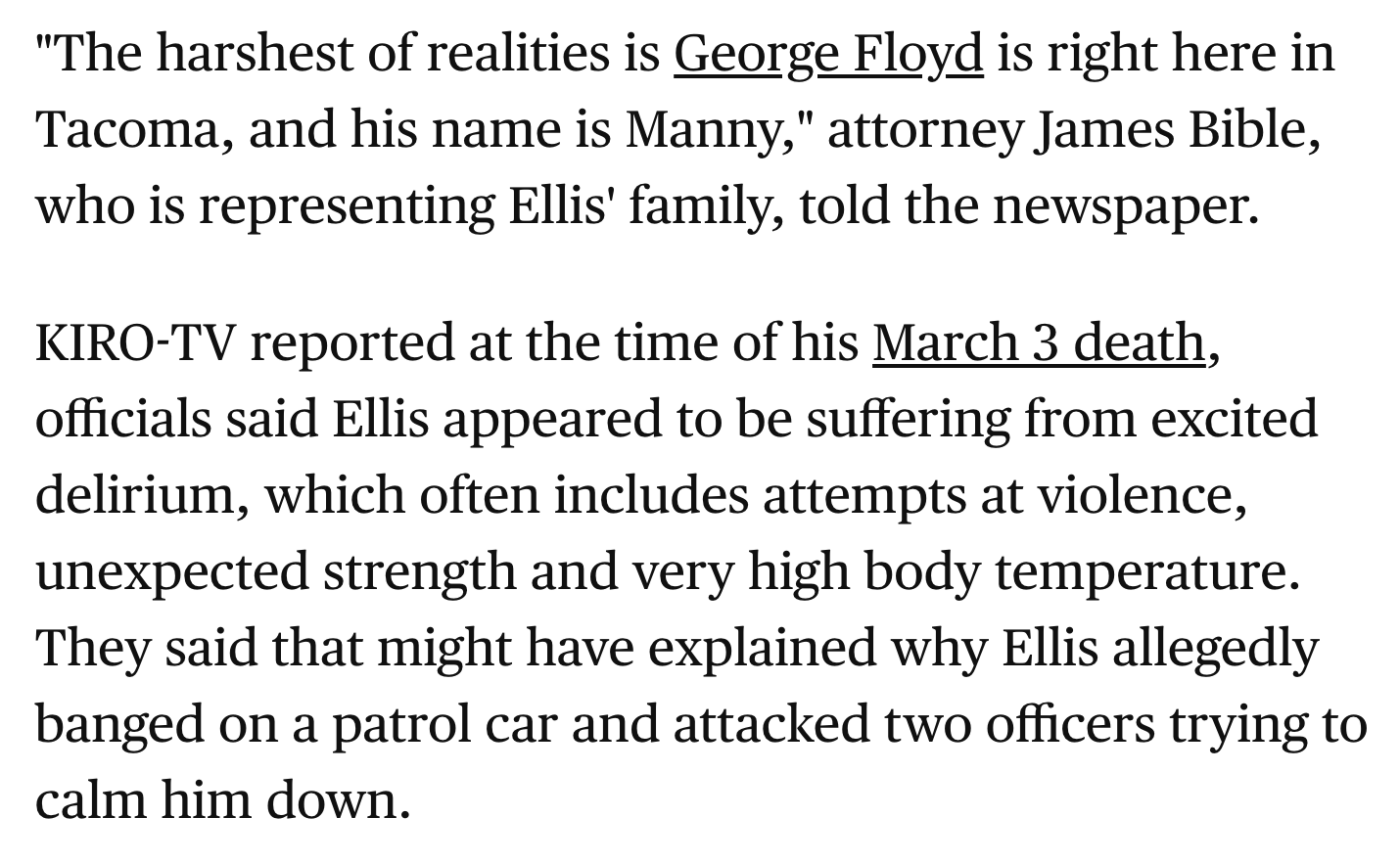 The name Manuel Ellis also sums to 42, and Washington is the 42nd state. Of course, Rodney King was beat on 42, and you know the rest of the 42s.