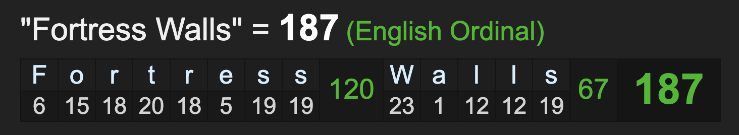 ‘Fortress Walls’. I don’t think it is accidental phrasing. Notice the 187.