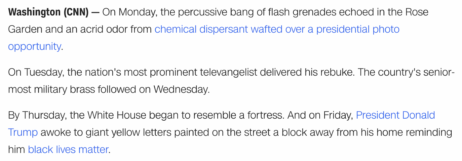 Trump’s fortress walls after George Floyd protests, June 6, 2020 CNN front page news