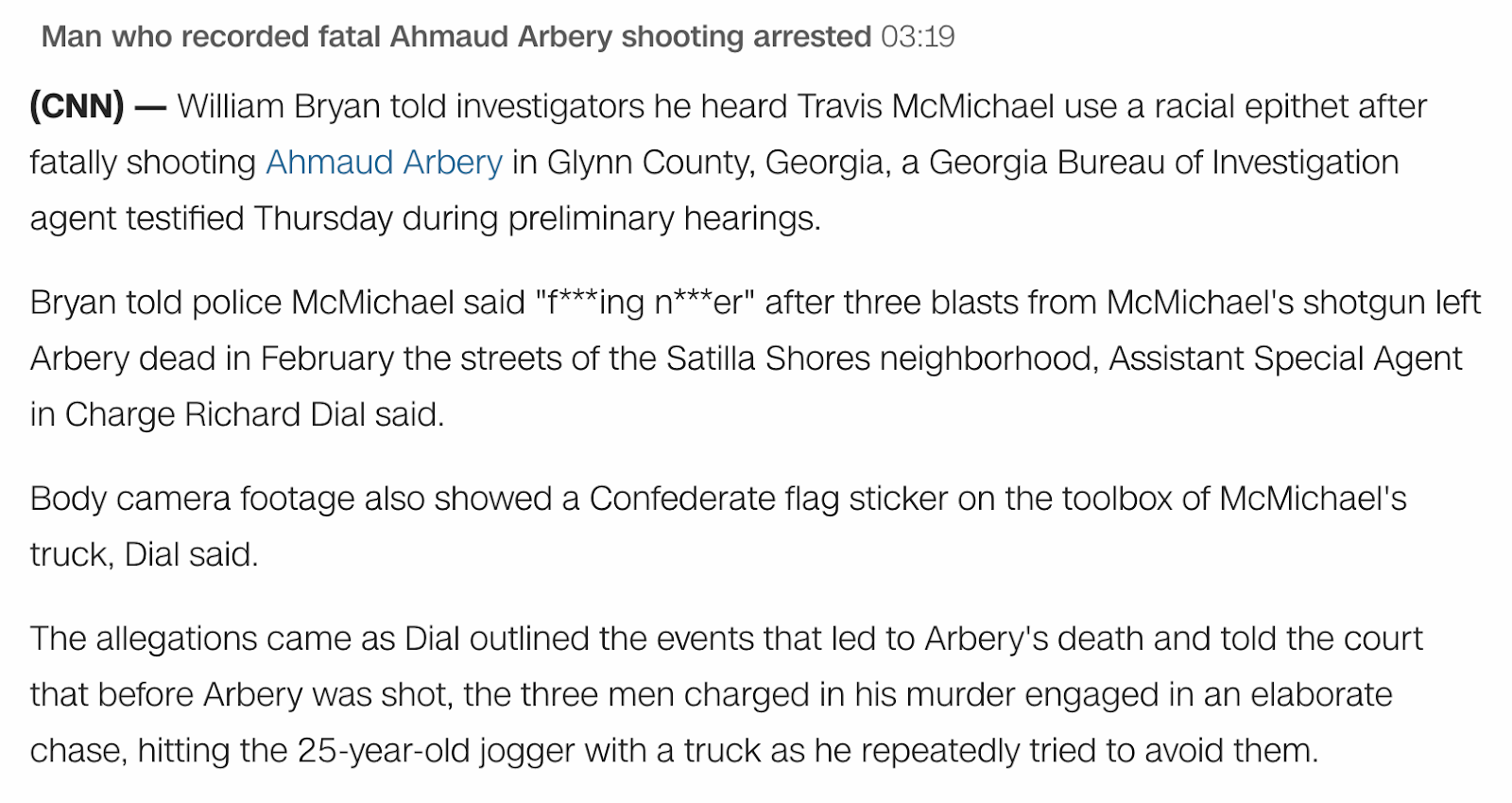 Ahmaud Arbery was hit by a truck and called a *igger before death, June 4, 2020 news