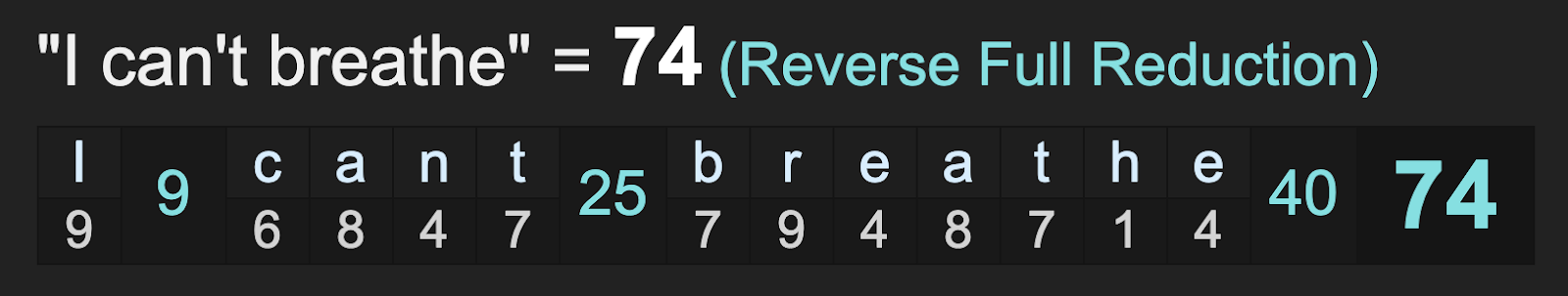 As we know, they love to pair 33 and 74, and the phrase “I can’t breathe” sums to 74.