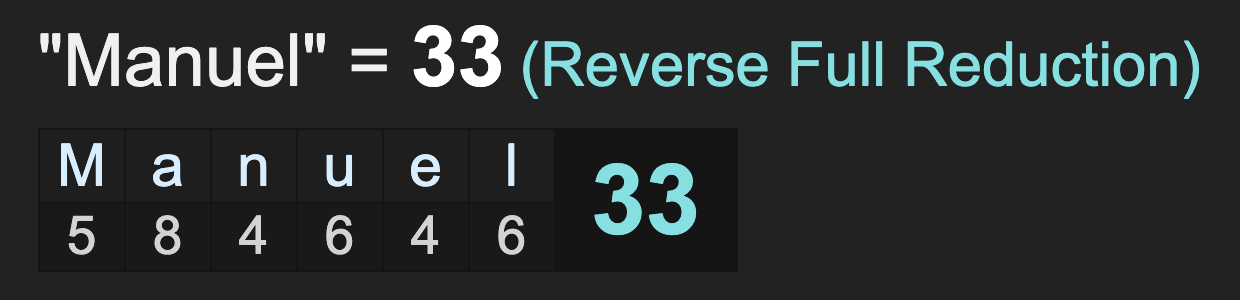 The names Manuel and Ellis both sum to 33.