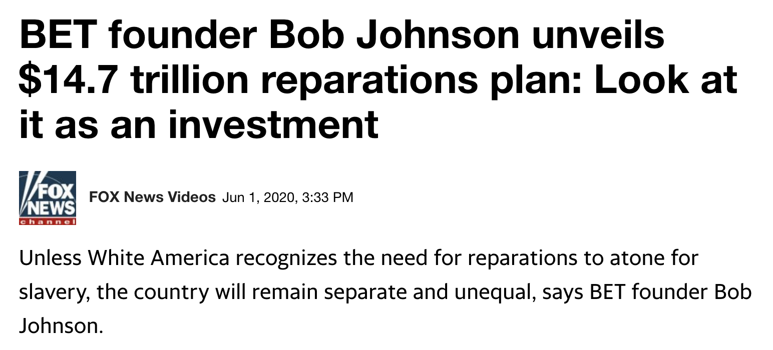 Bob Johnson says $14.7 trillion for 42 million black people in the video interview…