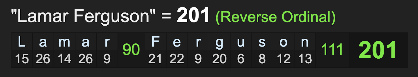 Read about the 201 ritual Adama Traore and George Floyd: https://gematriaeffect.news/the-killing-of-adama-traore-in-paris-france-july-19-2016-in-comparison-with-the-killing-of-george-floyd-during-the-time-of-coronavirus/