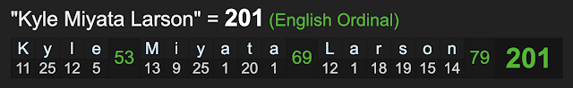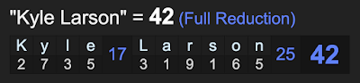 Notice the name Kyle Larson sums to 42, like ‘nigger’ as well.