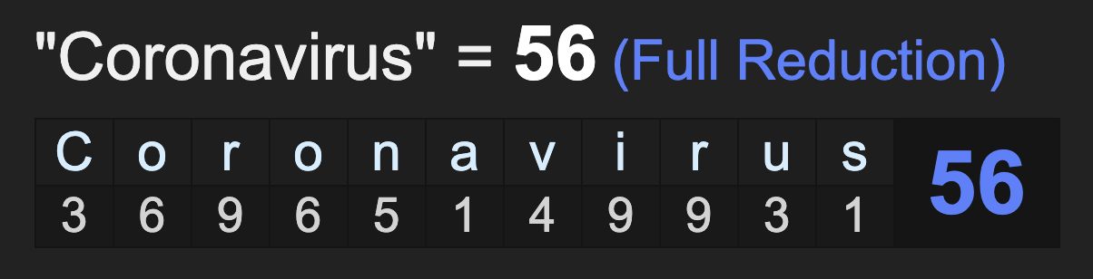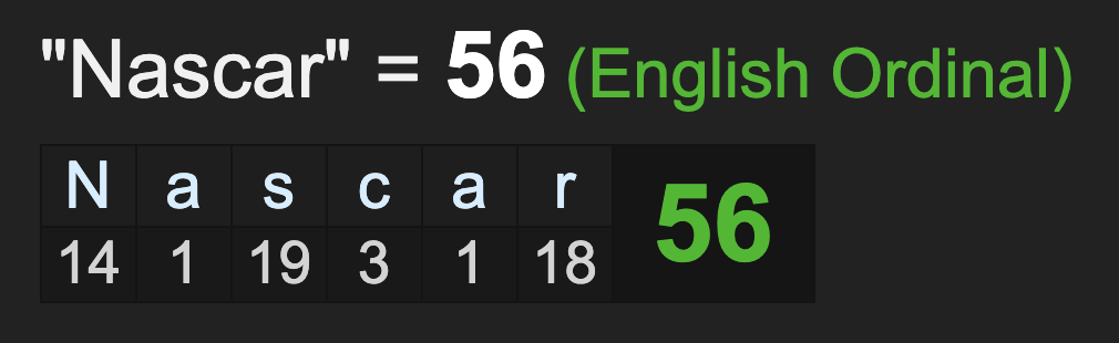 NASCAR also sums to 56, like ‘coronavirus’.