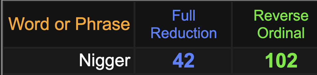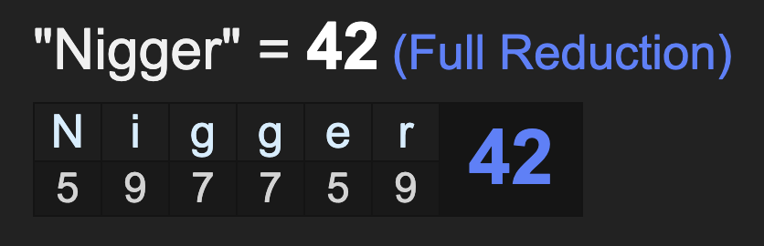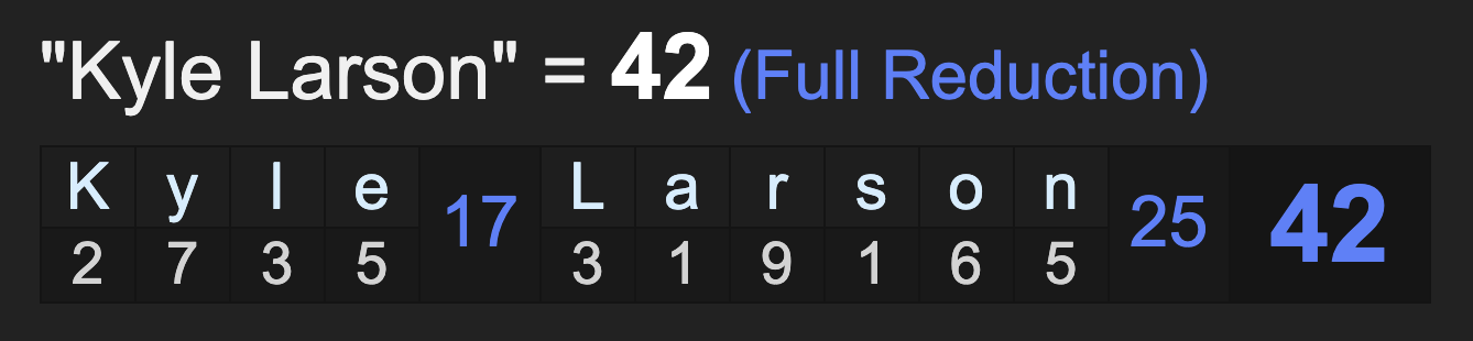 Notice the name Kyle Larson sums to 42, like ‘nigger’ as well.