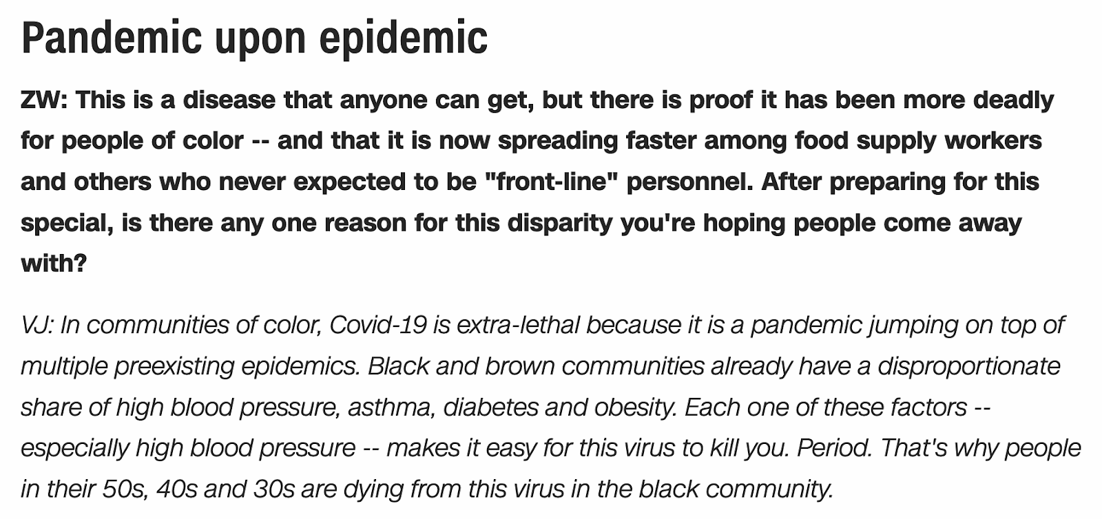 Headlines tell the tale of how coronavirus is disproportionately impacting people of darker skin tones