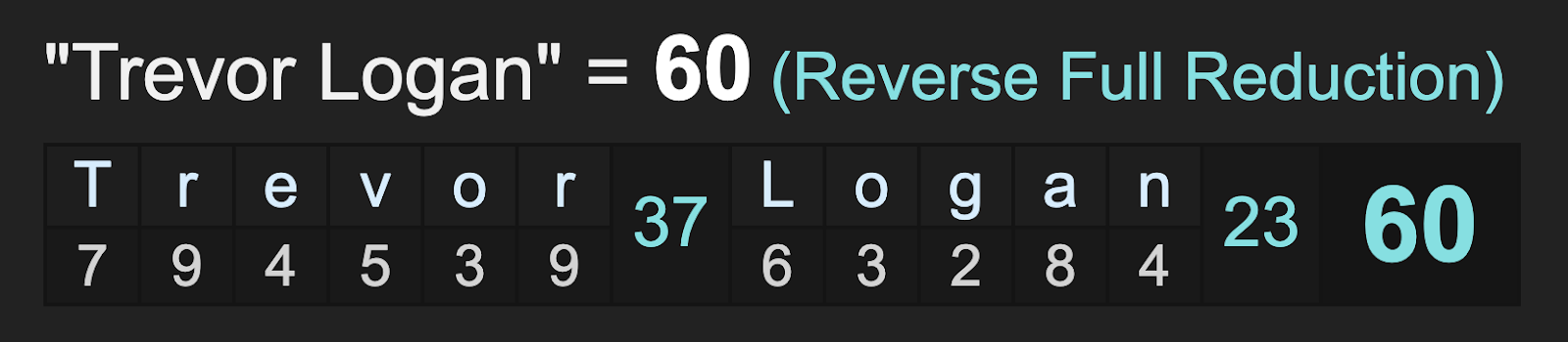 The full gematria breakdown is as follows.