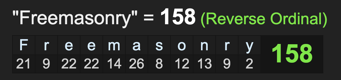 4/14/2020 = 4+14+20+20 = 58 *Freemasonry = 58
