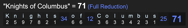 Notice how ‘Knights of Columbus’ sums to 71, the same as ‘Catholic’.