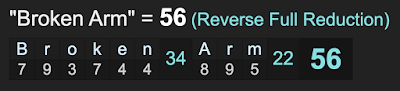 Notice further, ‘broken arm’ sums to 56, the number of the coronavirus ritual.