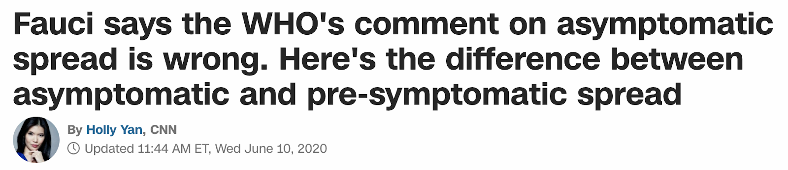 Anthony Fauci says WHO is wrong on asymptomatic comment, June 10, 2020