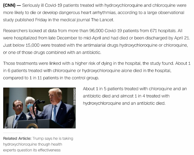 Study links drug touted by Trump to greater risk of death, May 22, 2020 news