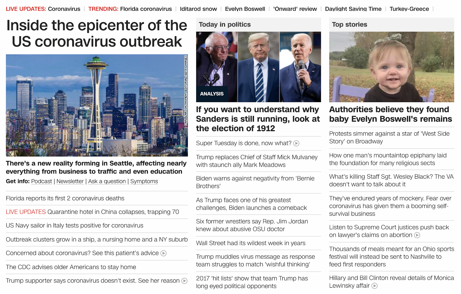 CNN focuses on epicenter of coronavirus outbreak, Seattle, March 7, 2020, one day after helping bring toilet paper hysteria