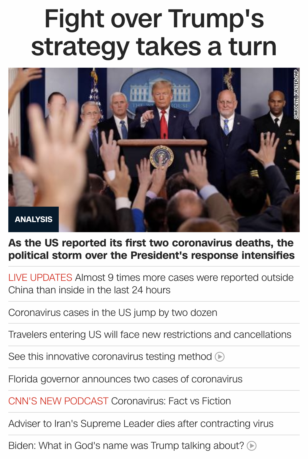 After two deaths reported in Washington state, the 42nd state, Trump is looking for the vaccine.