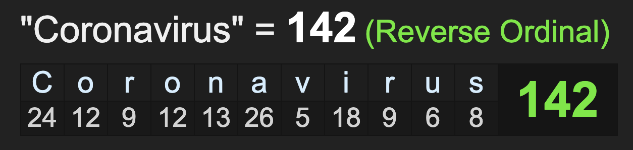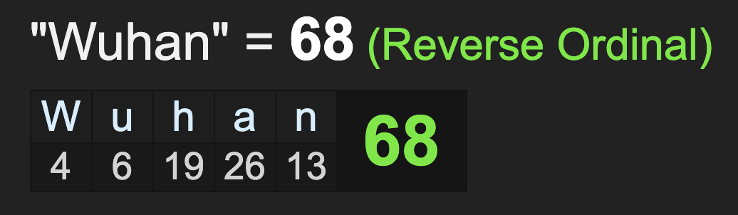 Tomorrow, Sunday, March 8, will be 142-days after, which is also noteworthy. March 8 is the 68th day of the year, and has a relationship with ‘Wuhan’ as well as ‘Seattle, Washington’.