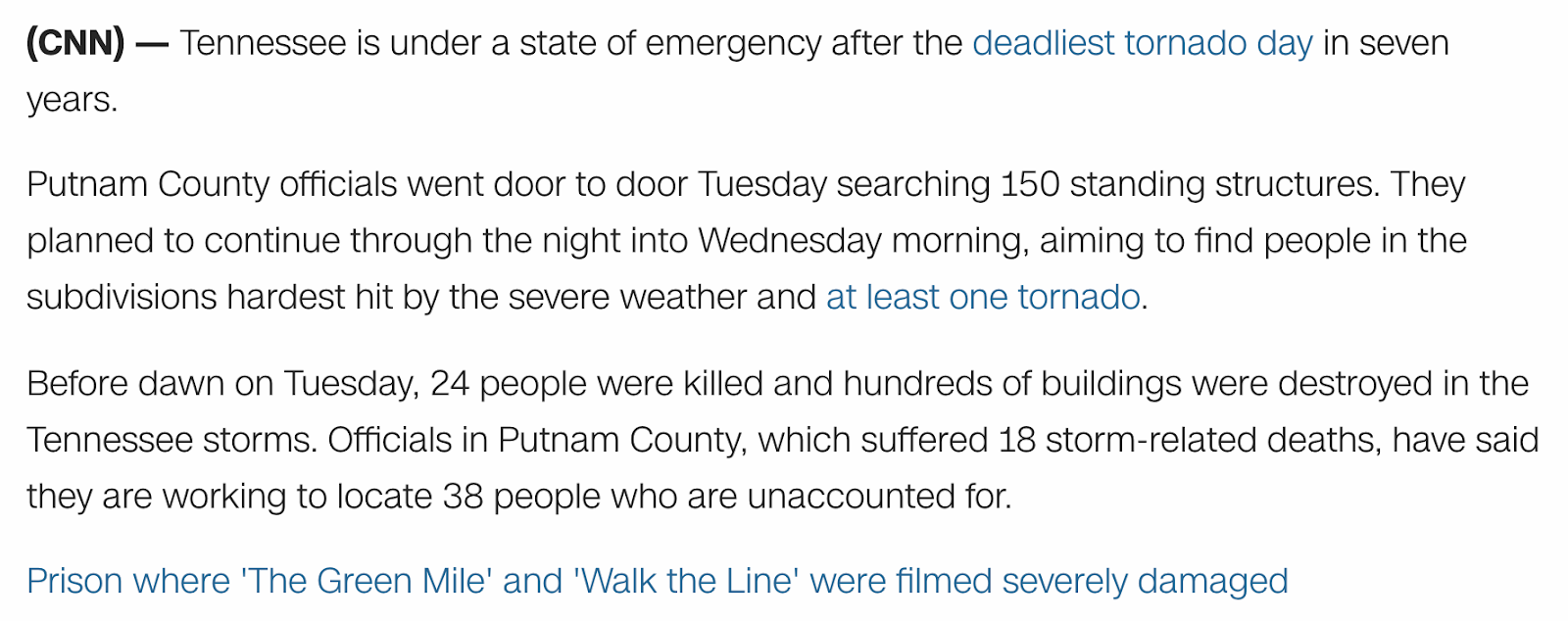 Mainstream reports “38” missing after Tennessee Tornado of March 3, 2020