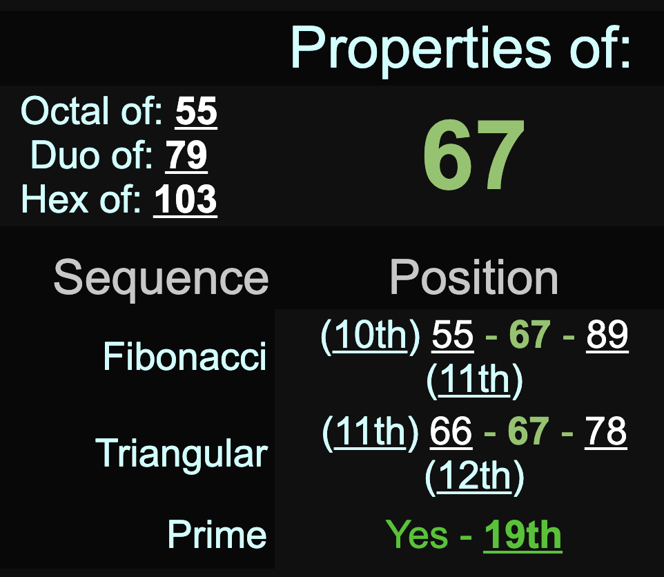*67, 19th prime